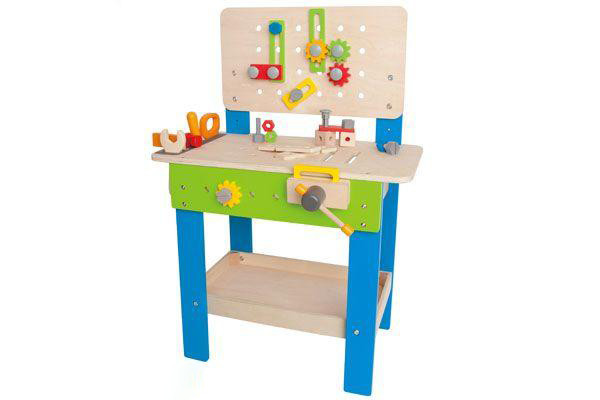 Leuke houten gekleurde werkbank van Woodtoys met 43 accessoires. Met deze werkbank ben je helemaal klaar voor iedere klus. Compleet met zaag, hamer, schroevendraaier en bankschroef. Geschikt voor kids vanaf 3 jaar.